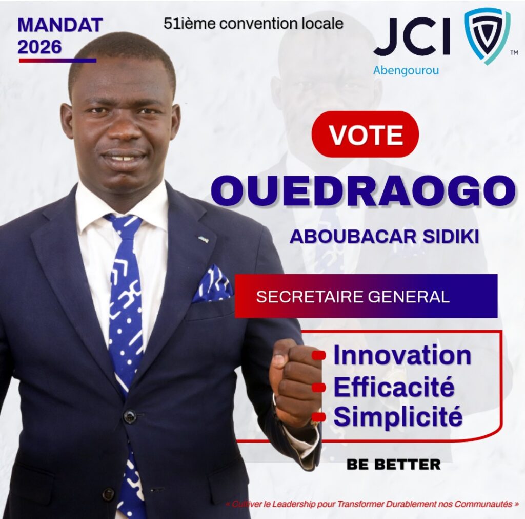 Animé par l’amour profond de notre organisation, le respect de ses textes et la conviction que la performance durable repose sur la rigueur administrative, j’ai l’honneur de vous annoncer ma candidature au poste de Secrétaire Général de la JCI Abengourou pour la mandature 2026.